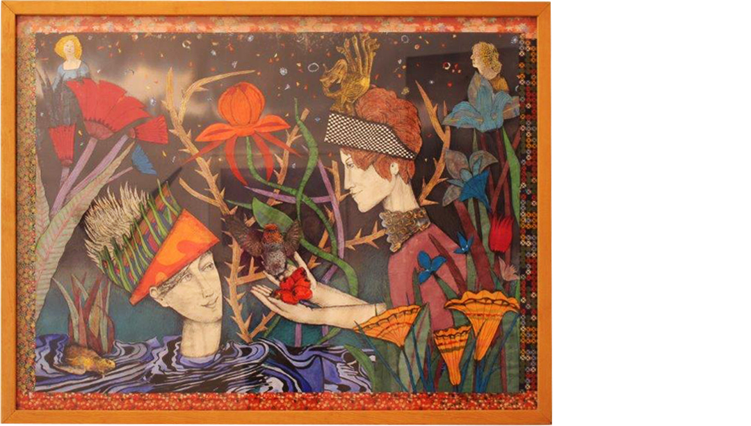 Throughout her career she worked in many styles and explored numerous techniques. Although the majority of her work is abstract, her elaborate illustrated collages, which depict fairy tales and fantasy worlds, are among her most admired pieces. The Islip Art Museum is fortunate to have three in its Permanent Collection.
