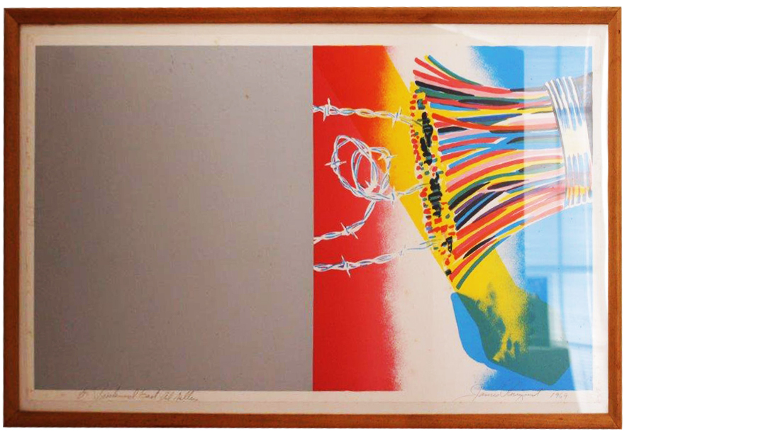 James Rosenquist is one of the leading figures in the Pop Art movement of the 1970’s. He began his career as a sign painter, specializing in large-scale billboards. He adopted the techniques and the language of advertising to fine art, creating work that featured air-brushed and painted images of celebrities, luxury products, fireworks, airplanes and text. His images are colorful and exuberant, capturing the optimistic mood of an era.