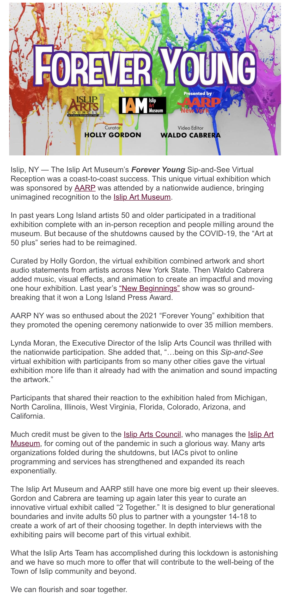 ARTICLE / South Bay's Neighbor / July 6 "AARP Forever Young Virtual Exhibition Opens"